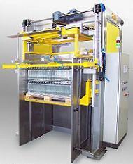 Semiautomatic depaletiser suitable for the depaletising and feeding of the bottling line with glass or PET bottles. Output : 60 lays /minute.
